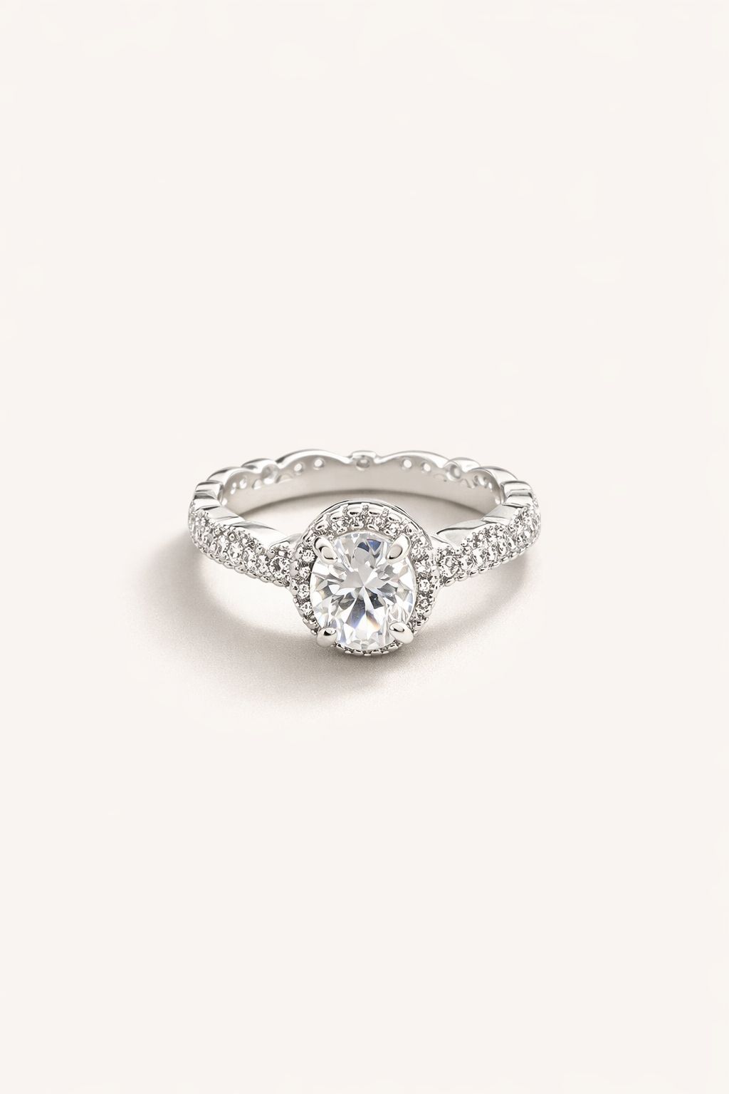 Anel solitário clássico com banho em prata 925, delicadamente cravejado com zircônias ao longo de toda a haste. A pedra central em zircônia de alto brilho é emoldurada por um aro de microzircônias, criando um efeito de halo sofisticado e extremamente luminoso. Uma peça elegante e atemporal, perfeita para ocasiões especiais ou para adicionar um toque de luxo ao uso diário.