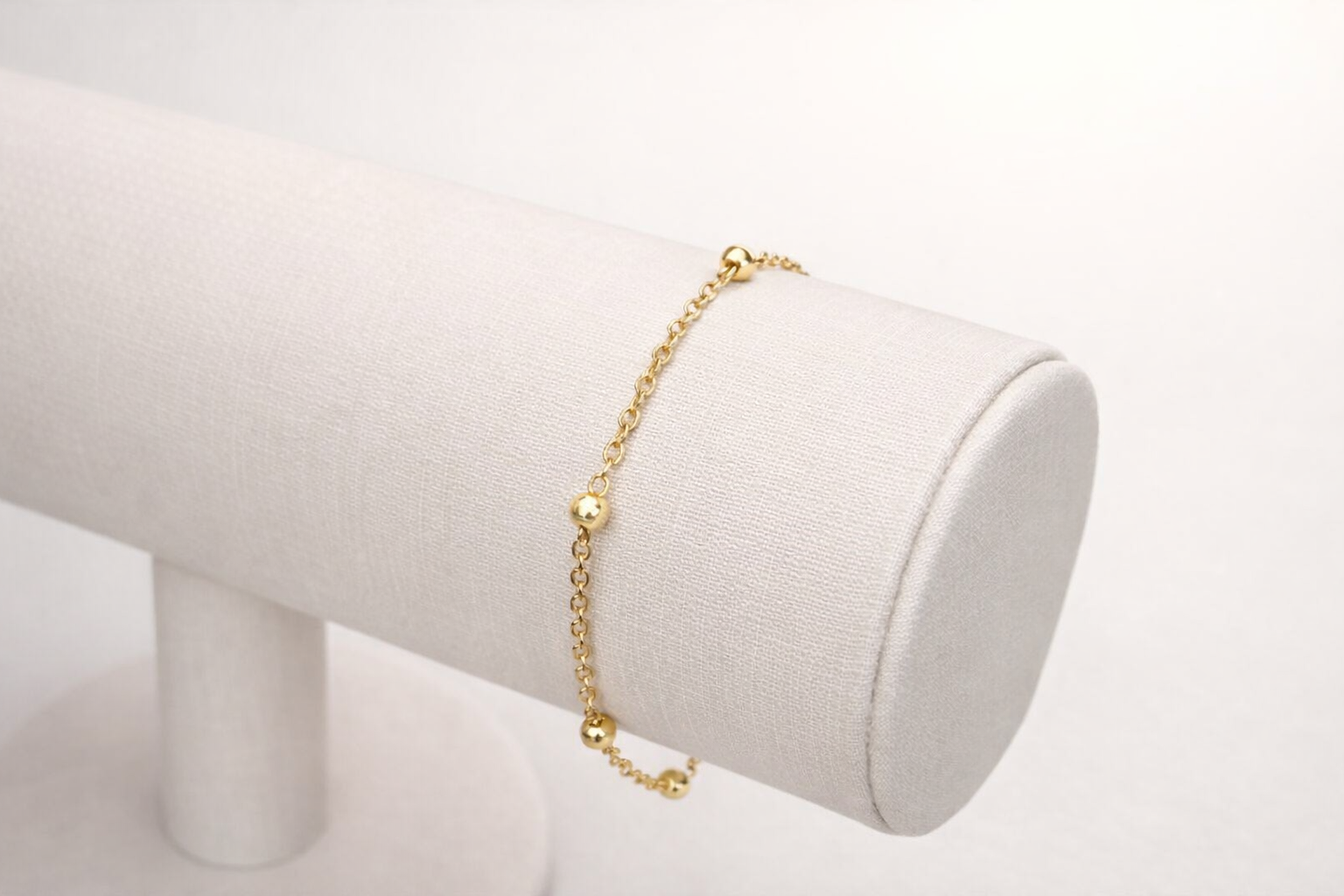Delicada e atemporal, a Pulseira Bolinhas é uma peça que valoriza a simplicidade com elegância. A corrente fina é intercalada por pequenas esferas douradas que criam pontos sutis de brilho, trazendo leveza e sofisticação ao visual.
